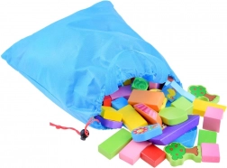 Sættet er pakket i en blå pose og en kartonspand med håndtag, hvilket gør det nemt at transportere og opbevare.