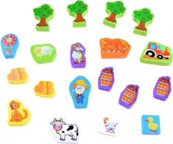 Vores farverige træklodser Gård er det ideelle legetøj til børn fra 3 år. Med 100 forskellige elementer kan børn bygge forskellige strukturer, fra bygninger til gårde, hvilket fremmer deres kreativitet og udvikling af fantasi.