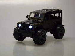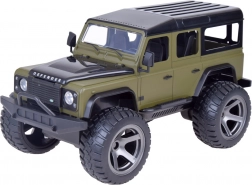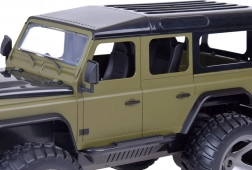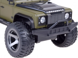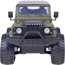 Detaljeret karrosseri inspireret af LAND ROVER Defender 110, høj frihøjde og store, bløde gummidæk med groft mønster klarer ujævnt terræn.