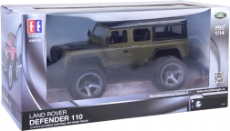 Robust RC-bil LAND ROVER Defender 110 i skala 1:14 giver masser af sjov på forskellige underlag. Takket være 2,4 GHz-styring, bløde gummidæk, baghjulsaffjedring og forreste LED-lys klarer den ujævnhederne uden problemer. Et genopladeligt 7,4 V batteri med USB-oplader sikrer nem og gentagen kørsel.