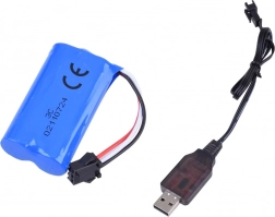 Inkluderer et kraftigt 7,4 V batteri og USB-oplader. Batteriet er sikkert placeret under chassiset, så udskiftning og opladning er hurtig og bekvem.