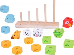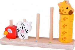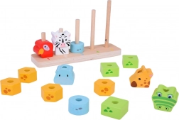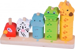 Hver pæl svarer til et tal fra 1–5 og hjælper børn med at forstå rækkefølge og mængde, når de stabler dyrene.