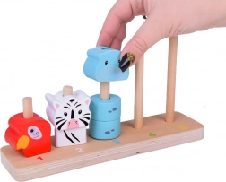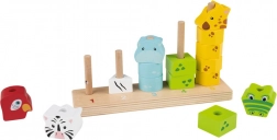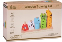 Dette kvalitets stablingsspil i træ kombinerer leg og læring. Børnene stabler de farvede dele og skaber dyrene i rækkefølge fra det mindste til det største, hvorved de naturligt øver at tælle 1–5, genkender farver og former og træner øje-hånd-koordination. De fleksible pinde på basen øger sikkerheden under legen.