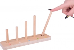 Håndtering af de farvede dele styrker greb, præcision og øje-hånd-koordination, når delene sættes på pælene.