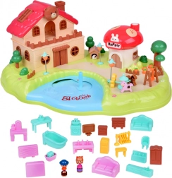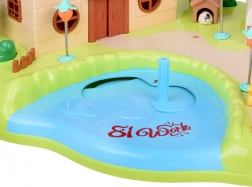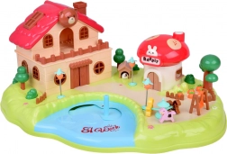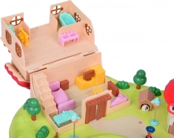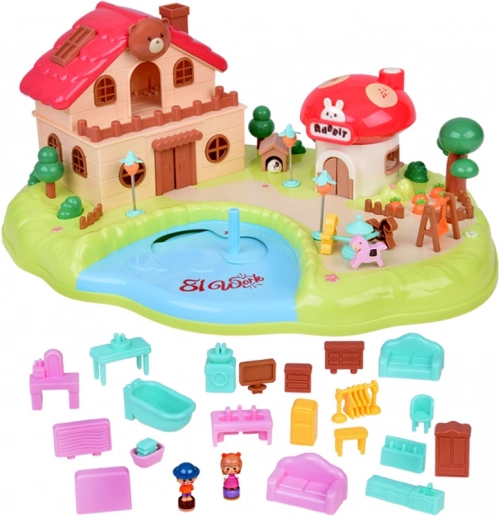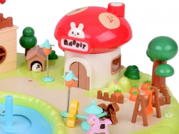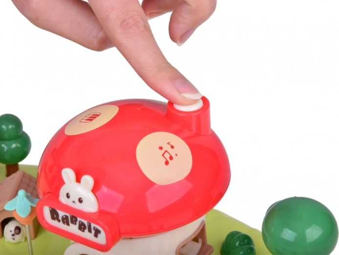 Dette interaktive magnetiske dukkehus skaber en farverig legeområde-scene med have, dam og svampebutik. Børn bruger styrestangen på den blå dam til at flytte figurerne, som takket være magnetisk induktion bevæger sig jævnt gennem hele scenen – fra gulerodsbedet over legepladsen til et besøg hos kæledyret. Svampehuset har funktionsknapper til lys- og lydeffekter og et stilfuldt “Rabbit”-skilt, der lyser i takt.