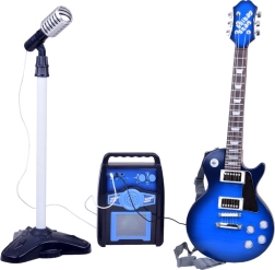 Denne stilfulde blå guitar med fungerende mikrofon og kompakt forstærker motiverer børn til at udforske musikkens verden. Takket være det realistiske look og tilslutningsmulighederne kan børnene nemt spille, synge og blive stjernen i familieshowet. Den justerbare mikrofonstativ følger barnets vækst og sikrer sammen med den medfølgende guitarrim komfortabel spilning.