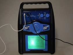 Den bærbare “Guitar Star”-forstærker gør det muligt at afspille akkompagnement fra MP3, har drejeknapper og et farvet bagbelyst gitter for et effektfuldt show.