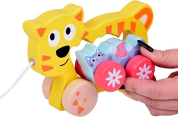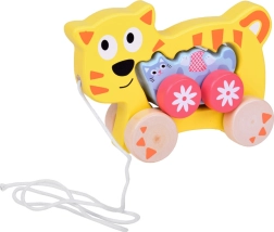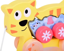 Det søde trækt-legetøj med killing 2-i-1 vil glæde ethvert lille barn, der tager sine første skridt. Den store kat kører den lille killing, og når man trækker i snoren, ruller begge nysgerrigt afsted efter barnet. Legetøjet i kvalitets træ i blide farver støtter udviklingen af motorik, koordination og motiverer naturligt til at gå. Takket være de afrundede kanter og det behagelige greb til små hænder er det sikkert og rart at lege med.