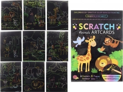 Dette sæt ridsebilleder er det perfekte valg til små kunstnere. Under det sorte lag gemmer der sig farverige motiver, som børnene afslører ved gradvist at skrabe med den medfølgende træpind. Den enkle teknik giver flotte resultater uden rod.