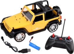Denne sjove fjernstyrede terrænbil udmærker sig med åbent off-road karrosseri, realistiske detaljer og stabil kørsel. Takket være baghjulstræk og mulighed for justering af hjulenes toe-in er den nem at styre og holde på sporet, mens forlygterne lyser vejen under kørslen.