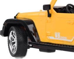 Åben karrosseri i jeep-stil, kromfælge og detaljeret interiør gør modellen til en attraktiv terrænbil for både børn og entusiaster.
