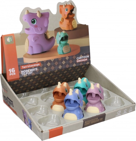 Væk barnets fantasi med det kørende dinosaurus-dyr, som sætter i gang fremad, når den øverste kæbe trykkes ned. Modellen, inspireret af TRICERATOPS, glæder børn med sin enkelhed og sjove mekanik – ingen batterier, bare tryk og kør!
