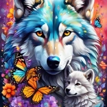 Fordyb dig i vildmarkens verden med dette fortryllende puslespil, der viser ulvenes moderlige kærlighed. Dette vidunderlige billede vil live ethvert sted op i dit hjem.