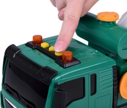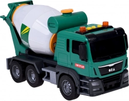 Den grønne betonblander er ideel til små fans af byggeplads køretøjer. Den er udstyret med lyd effekter og bevægelige dele, hvilket tilføjer ekstra realisme til hver leg. Børn kan dreje betonblanderens tromle, efterligne betonsammentrækning, og med den funktionelle sliske kan de eannmændee en blanding.