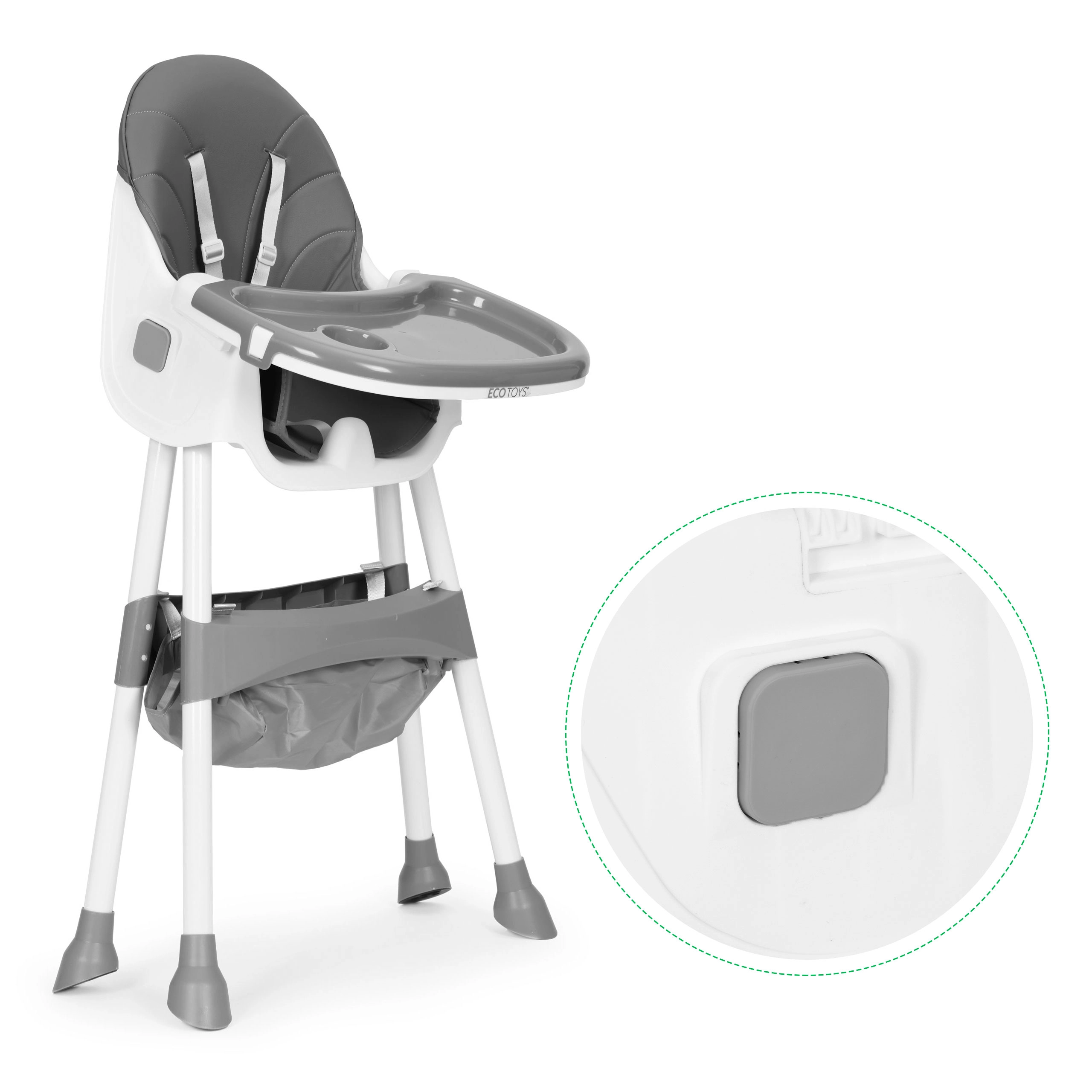 ECOTOYS højstol gør fælles måltider og den første madning lettere. Takket være den brede bakke med mulighed for justering i 3 positioner kan barnet komfortabelt spise og lege – bygge klodser eller tegne. Sædet med holdbart økolæderbetræk tørres blot af, så vedligeholdelsen er hurtig og bekymringsfri.