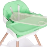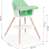 Den praktiske 2-i-1 højstol til børn fra ECOTOYS kombinerer en høj stol og et separat sæde til en almindelig stol. Den tilbyder en stabil konstruktion med metalben, en let aftørkelig dobbelt bakke, der tåler opvaskemaskine, 5-punkts sikkerhedssele, skridfaste ender og fodstøtte. Ideel til børn fra 6 til 36 måneder med en bæreevne på 20 kg.