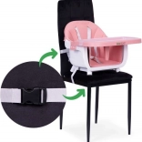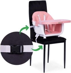 2 anvendelsesmåder – hjemme og på farten: Den høje stol kan på få øjeblikke laves om til et sæde, der fastgøres på en standardstol. Efter at have fjernet benene fastgøres sædet med de medfølgende remme – den ideelle løsning til ferier, besøg og små køkkener.