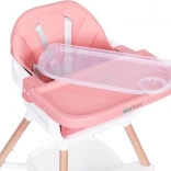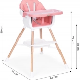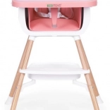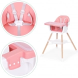 Praktisk 2‑i‑1 høj barnestol fra ECOTOYS til børn fra 6 til 36 måneder, der kombinerer en høj stol og et separat sæde til en almindelig stol. Den tilbyder en stabil metalkonstruktion, betræk af slidstærkt og let aftørreligt økolæder, dobbelt aftagelig bakke, der tåler opvaskemaskine, 5‑punkts sele, skridsikre endestykker, skridstop og en praktisk hylde under sædet. Maksimal belastning 20 kg.