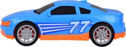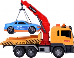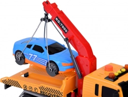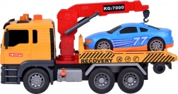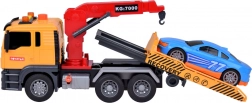 Sættet inkluderer også en blå sportsbil, der passer perfekt til bugseringsbilen. Hele legetøjet kommer i realistiske farver - gul, grå, rød og blå.