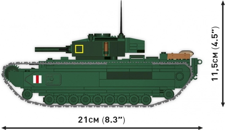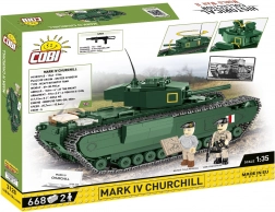 Byg den legendariske britiske tunge infanteritank MARK IV CHURCHILL i skala 1:35 af 668 kvalitetsklodser fra COBI. Modellen har funktionelle bælter, roterende tårn, bevægelig kanon og åbneluge. Inkluderer 2 detaljerede minifigurer med rigt tilbehør samt højkvalitets-tryk, der ikke falmer. Ideel til historieentusiaster og byggesæt-fans.