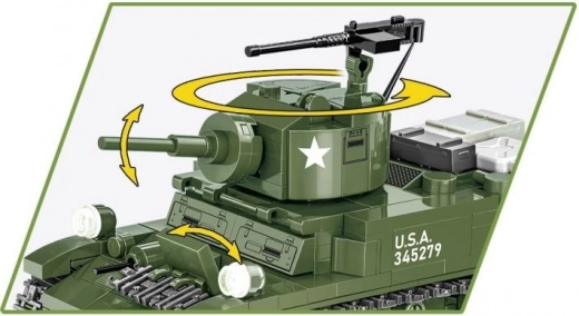Modellen er fremstillet af 511 solide klodser med højkvalitets tryk, der ikke falmer. Med følger to figurer af amerikanske kampvognssoldater med headset-hjelme og udstyr. Byggesættet er fuldt kompatibelt med andre byggemærker, opfylder sikkerhedsstandarder og vil glæde både samlere og unge historieentusiaster.
