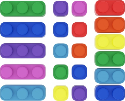 I pakken finder du en kombination af enkeltklodser, dobbeltklodser og trippelklodser, som gør det muligt at bygge både simple og mere komplekse former. Materialet er blødt og sikkert, velegnet til mindre børn og både hjemme- og institutionsmiljøer.