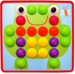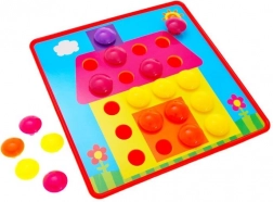 Den kreative mosaik med knapper er et glimrende valg til nysgerrige børn. Sættet indeholder farvede knapper, en plastplade og billedskabeloner, hvor børn sætter knapper i efter farver eller egen fantasi. Legen styrker kreativ tænkning, farvegenkendelse og finmotorik.