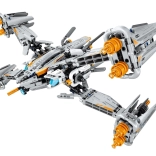 Dette store byggesæt giver alt til spændende rummissioner og flot udstilling. Takket være den gennemtænkte konstruktion skaber du nemt et futuristisk skib med justerbare vinger, roterende motorer og mekanisk drivkraft, som giver modellen et realistisk udtryk og funktion. Den stabile stander fremhæver hver detalje på hylden.