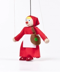 Denne søde træmarionet af Rødhætte er omhyggeligt fremstillet på GERLICHs beskyttede værksted. Takket være den lette konstruktion, styresnorene og den kompakte størrelse på 12 cm er den nem at håndtere selv for børn fra 3 år. Hvert stykke er unikt og kan variere en smule i farvedetaljer.