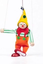 Klovnen Jarmil i et farverigt outfit med klassisk hue er en charmerende træmarionet, som børn nemt kan få til at bevæge sig ved hjælp af styresnore. Takket være kvalitets håndværk fra et beskyttet værksted er hver marionet unik og kan afvige en smule i farvedetaljerne.