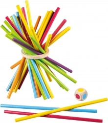 Slå med terningen med farvede prikker og træk pinden i den tilsvarende farve. Hurtigt at forstå, flydende tempo og ingen lang forberedelse.