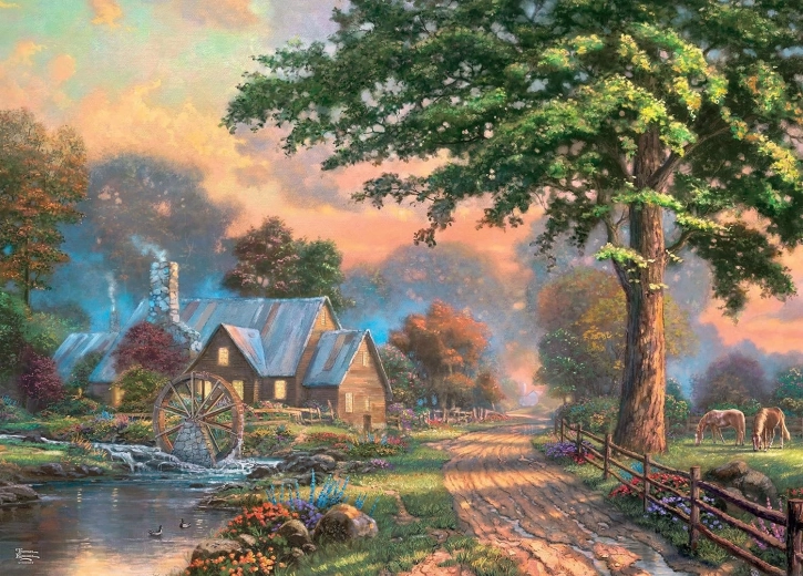 Schmidt træpuslespil Enklere tider II, 1000 brikker. Laserpræcision, specialformer, miljøvenlig emballage og plakat. Mål 69,3 × 49,3 cm.