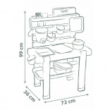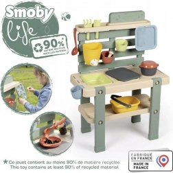 Oplev udendørs sjov med sættet SMOBY LIFE – et udendørskøkken til børn til vand og sand, der stimulerer kreativitet, sansning og samarbejde. Takket være aftagelige beholdere, en funktionsdygtig hane og et rigt sæt på 15 tilbehørsdele kan børn bruge timer på at skabe med sand, vand og naturens skatte.
