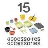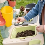 Der medfølger 15 praktiske tilbehørsdele (si, kurv, øse, rive, skovl m.m.), afsætningsflader, kroge og et låg til beholderen til at gemme og opbevare “skatte”. Konstruktionen i kvalitetsplast med UV-beskyttelse er farveægte og klar til udendørs brug.