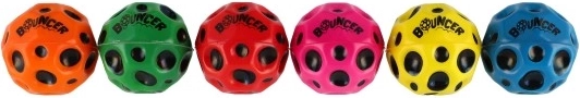 Sjov, der aldrig bliver kedelig! Denne ekstremt hoppende skumbold med et originalt meteoritdesign begejstrer både børn og voksne. Med en diameter på 6 cm ligger den godt i hånden, er let, holdbar og fås i seks iøjnefaldende farver. Ideel til leg inde og ude for børn fra 3 år.