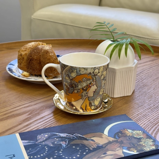 Oplev jugendkunstens magi med en smok inspireret af værket ALFONS MUCHA – Zodiak. Det præcise print med fine linjer, blomsterornamenter og et kvindeportræt forvandler enhver pause til en æstetisk oplevelse. Smokken er lavet af kvalitetsporcelæn, som er behagelig at røre ved og holder godt på varmen.