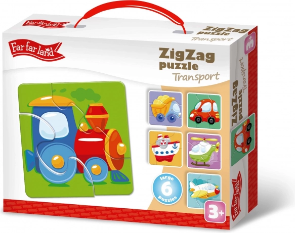 Far Far Land Puzzle ZigZag bringer et sjovt trafikmotiv med seks smukt farvede billeder. Den specielle zigzag-snit sikrer, at spillet bliver endnu sjovere og udvikler barnets logik og motoriske færdigheder.