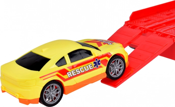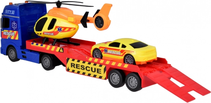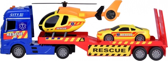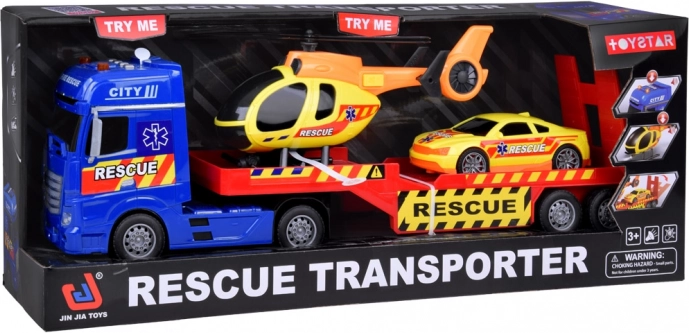 Lad dine børn dykke ned i den spændende verden af redningsaktioner med dette enestående sæt! Legen omfatter et realistisk scenarie med køretøjer som en lastbil med aftagelig ladplatform, en helikopter og en personbil.