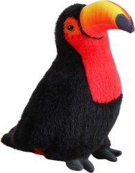 Plystukanen udmærker sig ved et realistisk udseende med kontrastfuld sort og rød samt et typisk farverigt næb. Det bløde materiale er behageligt at røre ved og ideelt til daglige kram og rolig indsovning.