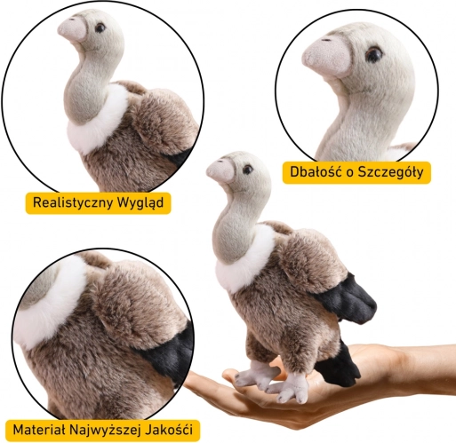Denne krammevenlige legeting opfylder certificeringerne CE og EN71, så du kan stole på sikker brug. De neutrale farver, der er typiske for gribbe, passer perfekt ind i ethvert børneværelse og understøtter pædagogiske lege om fugleverdenen.