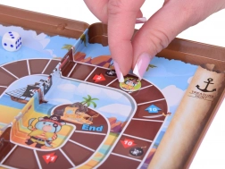 *Reglerne er enkle* – kast terningerne, bevæg dig på spillebanen, og undgå forhindringer som sværd og kranier, der kan sænke dig. Målet er at nå skatten før de andre spillere, men vær forsigtig, du skal have det præcise kast!