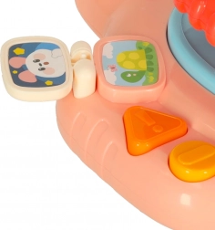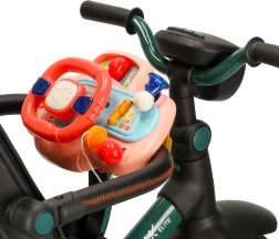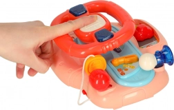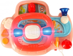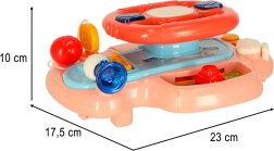 Det interaktive børnerat er et fantastisk legetøj til kreativ leg både hjemme og på farten. Barnet kan dreje rattet og “styre” den lille bil på instrumentbrættet, ledsaget af motorstart, horn, blinklys med lys og glade melodier. Takket være justerbar lydstyrke kan legen nemt tilpasses omgivelserne.