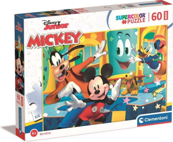 Børnepuslespil Clementoni Mickey Mouse MAXI 60 brikker. Store brikker, livlige farver, tryk af høj kvalitet. Størrelse ca. 42 × 62 cm. Ideelt til børns udvikling.