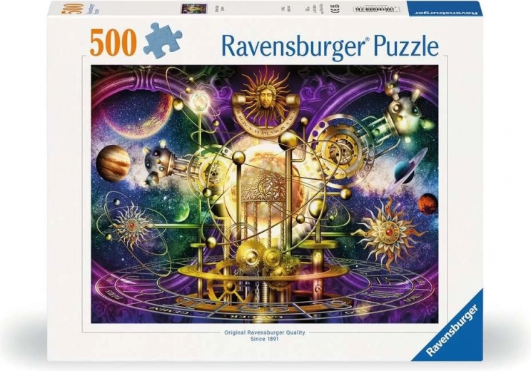 Oplev universets skønhed med et kvalitetspuslespil fra RAVENSBURGER! Denne puslespilsæske med 500 brikker viser et gyldent solsystem inspireret af historiske orrery-modeller og byder på præcise detaljer, afslappende underholdning og træning af koncentrationen for både børn og voksne.