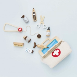 Indeholder alle nødvendige værktøjer til en lille dyrlæge: stetoskop, injektionssprøjte, saks og mere.