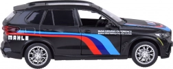 Bilmodellen BMW X5 M er præcist udført med fokus på detaljer, hvilket vil blive værdsat af både små og store bilentusiaster. Takket være metal-karrosseriet og gummihjulene forbliver gulvet uskadt under leg. Chassiset er lavet af plast, hvilket gør den lettere.