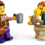 Model af camper, bålsted, 2 voksen-minifigurer, babyfigur, tilbehør (guitar, flaske, 2 krus, croissant)