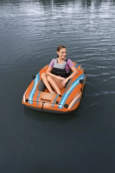Sikkerhed og komfort sikres af 3 separate luftkamre og en oppustelig, riflede bund, som dæmper ujævnheder og øger stabiliteten. Åreøjer gør roningen lettere, mens den omløbende sikkerhedsline hjælper ved ombordstigning, transport og fortøjning af båden.