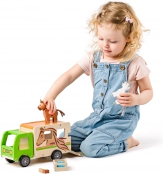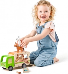 Denne omhyggeligt fremstillede træhestetransportør giver børn realistisk underholdning. Den grønne kabine, træets naturlook og hestetryk skaber et attraktivt design, der indbyder til historier fra både gården og væddeløbsbanen. Den nedklappelige rampe gør det let at laste hestene, og den robuste konstruktion tåler daglig leg.