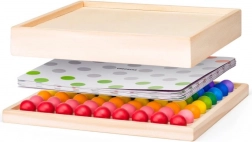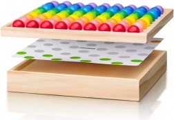 Sættet indeholder lag af kort med farvede prikker, der svarer til kuglernes farver. Børn lægger let billeder efter dem og træner præcision og koncentration.